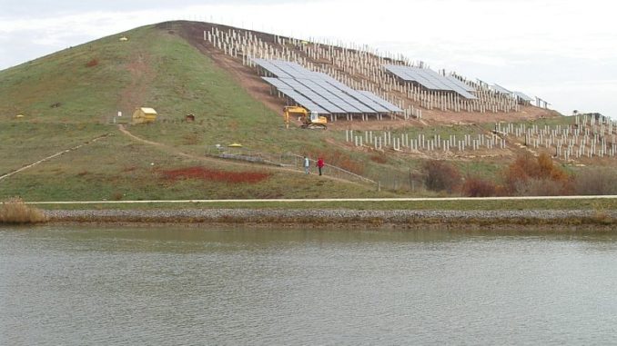 Im März 2003 hat Oberbürgermeister Thomas Jung den Bau einer großflächigen Photovoltaikanlage am Südhang der Deponie trotz vieler Bedenken durchgesetzt. Die Bauzeit der Solaranlage betrug knapp drei Monate. Innerhalb der drei Monate installierten Bauarbeiter 5760 Solarmodule mit einer Gesamtleistung von 1008 Kilowatt (kWp). Die Baukosten der Photovoltaikanlage betrug 4,6 Millionen Euro.
