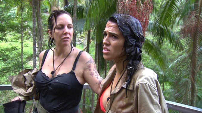 Sonja Zietlow stellt die erste Frage: „Die australische Flagge besteht aus drei Farben. Blau und …?“ Die Pumpe beginnt zu arbeiten. Danni dreht sich kopfüber und Elena fährt auf und ab. Hektisch wühlen beide in den Bottichen. Danni hat mit Fleischabfällen und Innereien zu kämpfen, Elena mit klebriger, dunkler Schleimmasse. Die Verständigung zwischen den beiden klappt nicht so richtig. Zwar hat Elena das Schild mit dem Wort WEISS in der Hand, aber Danni hat das Schild mit ROT nicht gefunden. Danni ruft: „Ich habe Würmer in den Ohren!“ Kein Stern!