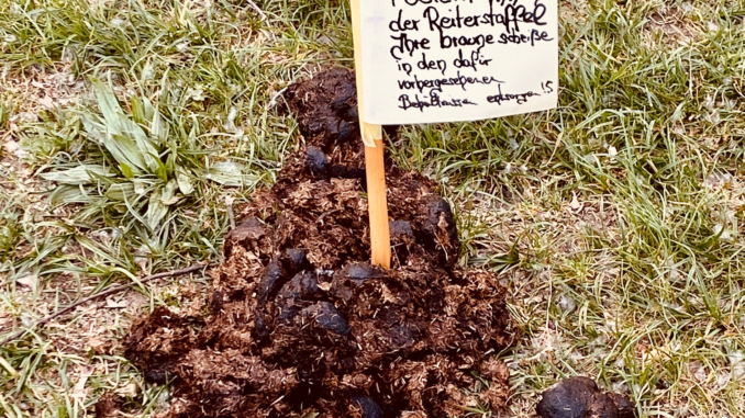 Hundehalter müssen per Gesetz die Hinterlassenschaften ihrer vierbeinigen Freunde umgehend entfernen. Andernfalls droht ihnen ein saftiges Bußgeld. Die Polizisten müssen das scheinbar nicht. Dabei ist es egal, ob es im eher belebten unteren Teil der Wöhrder Wiese oder im oberen Bereich der Satzinger Mühle ist: Überall liegen sie, die Pferdeäpfel. Sie stinken und schauen mehr als unappetitlich aus. Außerdem können sie, wenn sie beispielsweise von Kindern in den Mund genommen werden, Krankheiten auslösen.