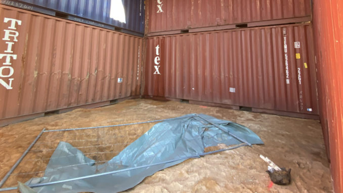 Container um den Fundort der Fliegerbombe Brunecker Straße - Bild: Feuerwehr Nürnberg