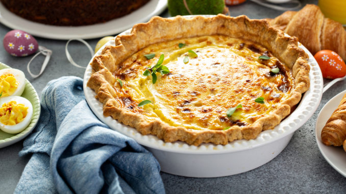 Zutaten für den Teig: 250 Gramm Mehl, 125 Gramm Butter, 1 Eigelb, Salz, 2 EL kaltes Wasser. Zutaten für die Füllung: 300 Gramm Schinkenspeck, 2 Zwiebeln, 4 Eier, 200 Milliliter Sahne, 200 Gramm Käse, Salz, Pfeffer, geriebene Muskatnuss