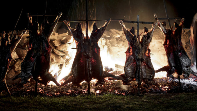 Beim „Asado“ (gegrilltes Fleisch) werden große Fleischstücke wie Chorizo und Rindersteaks über offenen Feuerstellen oder gleich ganze Tiere, vor allem Lamm und Ziege, auf eisernen Grillkreuzen gegrillt. Vor allem in Argentinien ist diese Zubereitungsart ein wichtiges Kulturgut. Dabei werden riesige Mengen verspeist, rund 1,5 Kilogramm Rind soll der hungrige Argentinier schaffen. Gewürzt wird das Fleisch puristisch mit Salz, Pfeffer, Chimichurri-Sauce oder Salsa Criolla, dazu gibt es meist Salat, Weißbrot und Wein. Ähnlich grillt man in Brasilien beim sogenannten „Churrasco“. Hier wird pikant gewürztes Fleisch auf langen Spießen über offenem Feuer gebrutzelt.