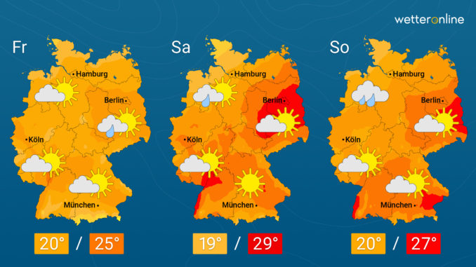 Nach einem meist trockenen Freitag erwarten uns am Wochenende große Temperatur- und Sonnenunterschiede. Während der Südosten sich noch mal Sommerwetter bekommt, ist im Nordwesten kühleres und zeitweise nasses Wetter angesagt.