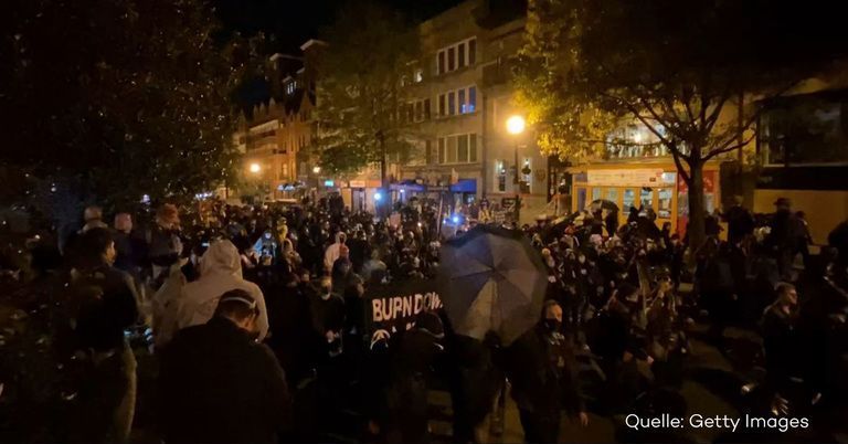 Brennende US-Flaggen, Aufrufe zum Aufstand und Nervosität bei Anhängern der Demokratischen Partei: In den USA war die Stimmung am Wahlabend vielerorts angespannt. Während vor dem Weißen Haus in der Hauptstadt Washington hunderte Unterstützer des demokratischen Präsidentschaftskandidaten Joe Biden bei der Stimm-Auszählung mitfieberten, zogen in der seit Wochen von Anti-Rassismus-Protesten erschütterten Westküsten-Metropole Portland teils bewaffnete Aktivisten vor das dortige Gerichtsgebäude.