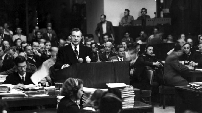 Der Prozess begann am 20. November 1945, als Richter fungierten vier Juristen aus den USA, Großbritannien, Frankreich und der Sowjetunion. Auch die Anklage war mit je einem Vertreter der Siegermächte besetzt. In seinem berühmten Eingangsvortrag sprach der US-Ankläger Robert Jackson davon, dass die menschliche Zivilisation selbst der eigentliche Ankläger des Verfahrens sei.