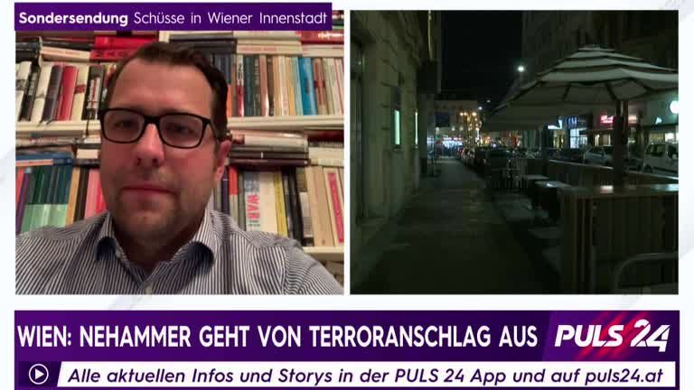 Nicolas Stockhammer, Terror-Experte, spricht mit PULS 24 Anchor Thomas Mohr über den augenscheinlichen Terroranschlag in Wien und sieht Parallelen zu den Anschlägen in Paris vor fünf Jahren.