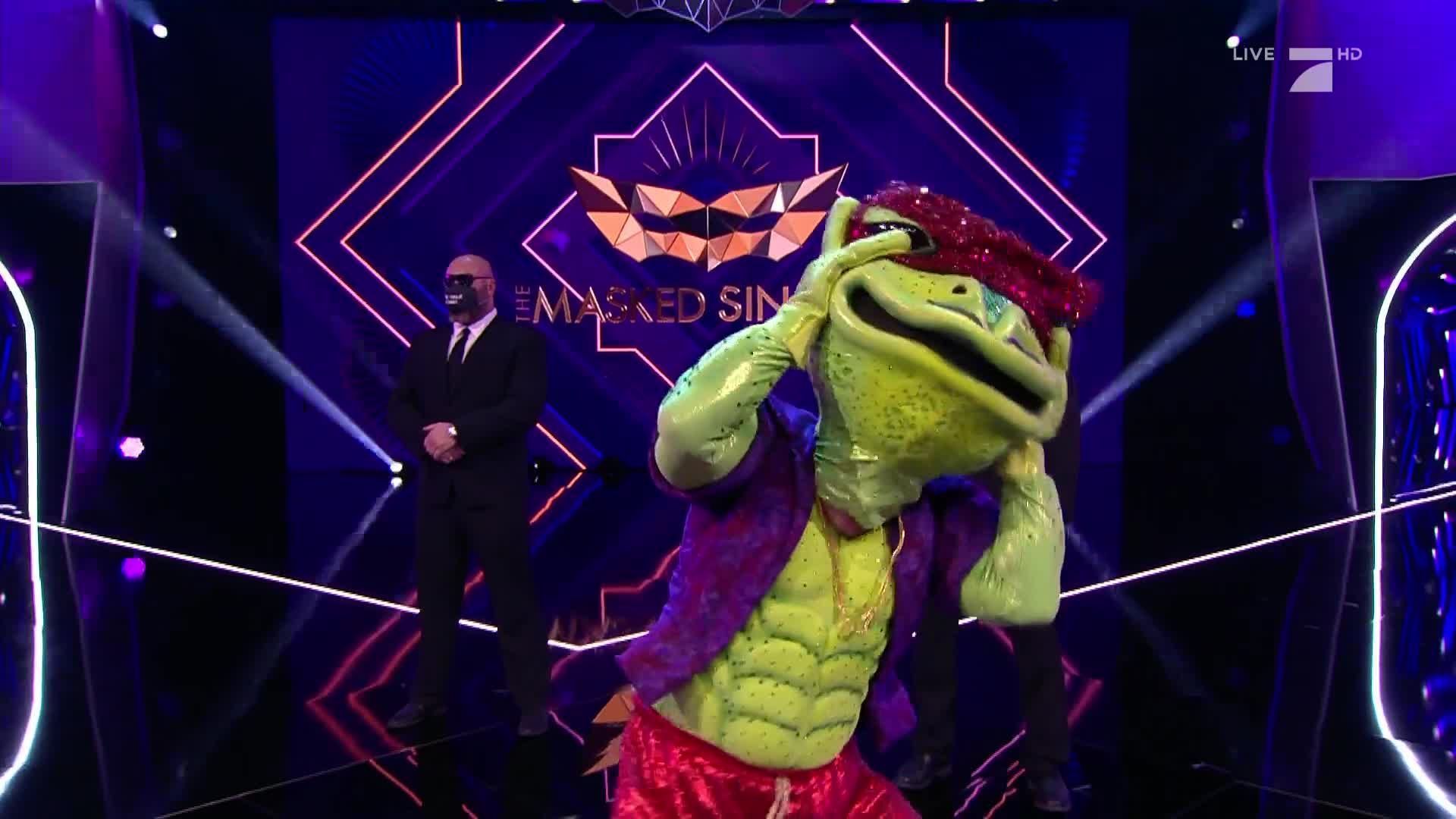 Der Frosch konnte sich in Show 4 nicht gegen die Katze und das Nilpferd durchsetzen. Die Zuschauer glauben, dass sich unter der Maske Wigald Boning verbirgt. Auch das Rateteam ist sich sicher, dass der Komiker im grünen Kostüm steckt. Diesmal lagen alle richtig! Wigald Boning ist der Frosch.