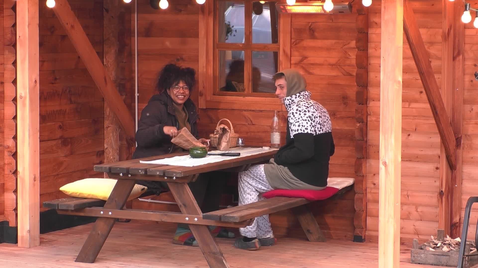 Vanessa und Pat verstehen sich blendend. Bei ihrer Raucherpause gibt es viel zu Lachen – und Erleichterung darüber, dass Pat keinen Herpes hat.